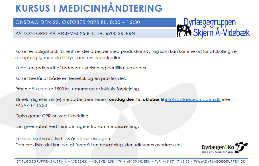 Den 22. oktober 2025 afholder vi kursus. Ring eller skriv til os hvis du skal have en af pladserne.
